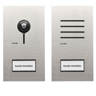 Die designprämierten Außenstationen ELCOM.ONE bestechen durch dezent-edles Design. Dazu tragen zum einen Frontplatten aus gebürstetem Edelstahl bei, die nahezu kratzresistent und rostfrei sind. Zum anderen kommen sie ohne sichtbare Verschraubungen aus, was sie so gut wie vandalismussicher macht. Der Clou: Entscheiden Sie sich im ersten Schritt für eine Audioanlage, ist eine spätere Umrüstung auf Videoversion durch den einfachen Tausch der Frontplatte möglich.