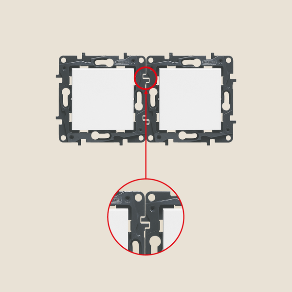 - Ausführung: Kombinationsgerät 1 bis 5-fach, Mosaic Adapter, IP44-Funktionen